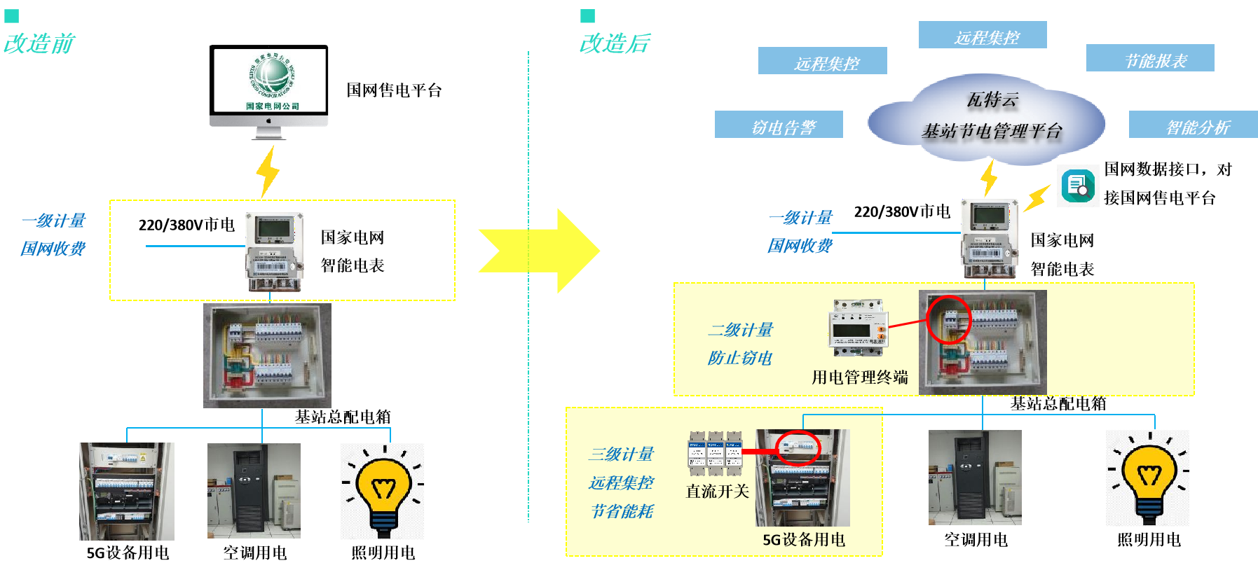 5G设备节能,集计量、控制、通信于一体的智能开关。