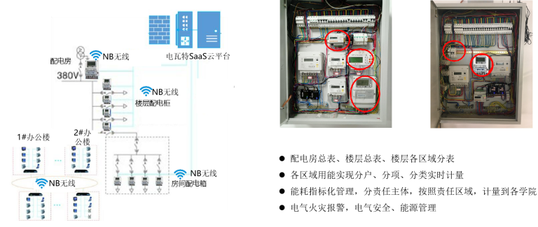 实验室重点设备监测,异常警告提醒;学生宿舍安全用电管理,恶性负载及功率限定。