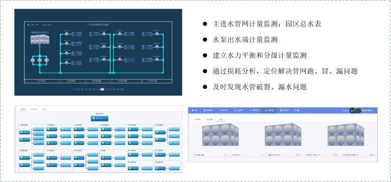 三级计量:配电房(总表)-配电柜(楼层分表)-配电箱(区域分表)。